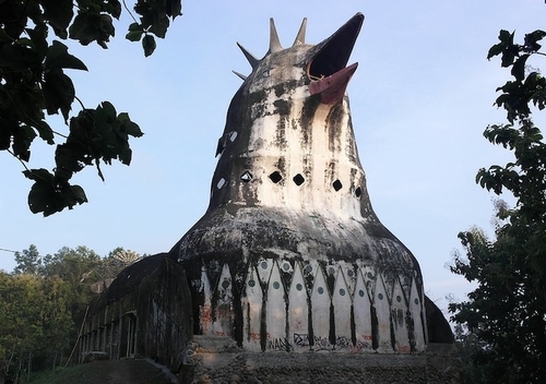Towering above the trees in a densely forested area of Indonesia lies a giant chicken. The gigantic structure has the body, tail, and head of the bird, even holding open its beak in what appears to be mid-squawk. Although the very old bird is quickly decaying, Gereja Ayam (as the locals call it) attracts hundreds of photographers and travelers to its location in Magelang, Central Java each year who are looking to explore the bird’s bizarre interior.